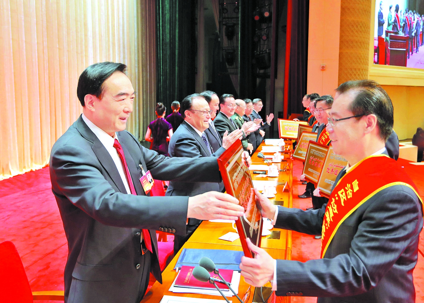 2018-03-29自治区举行“访惠聚”驻村工作二○一七年度总结表彰大会下图:3月28日,自治区“访民情惠民生聚民心”驻村工作2017年度总结表彰大会在新疆人民会堂举行。自治区党委书记、自治区“访惠聚”驻村工作领导小组组长陈全国,自治区党委副书记、自治区主席雪克来提·扎克尔等领导为受表彰的2017年度自治区“访惠聚”驻村工作先进工作队、先进工作者和优秀组织单位代表颁发荣誉证书和奖牌。 □本报记者崔志坚摄 本报乌鲁…[详细]