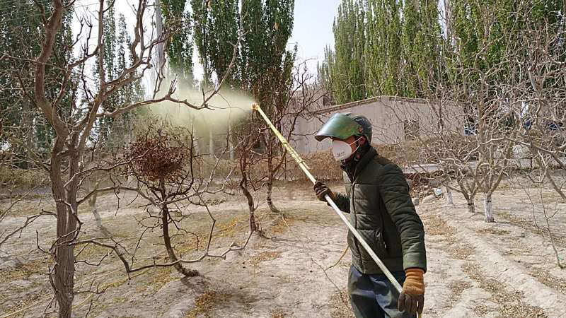 吾塔木乡全面开展石硫合剂喷洒工作